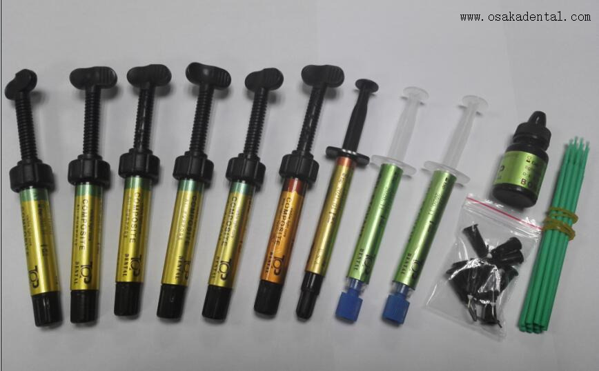 This comprehensive dental composite resin filling kit is designed for high-quality tooth restorations, offering a range of advanced materials to meet diverse clinical needs. The kit includes: